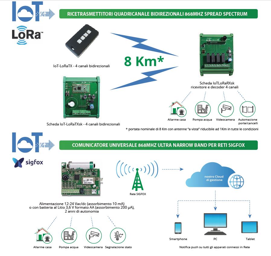 IoT: ricetrasmettitore quadricanale bidirezionale e comunicatore universale