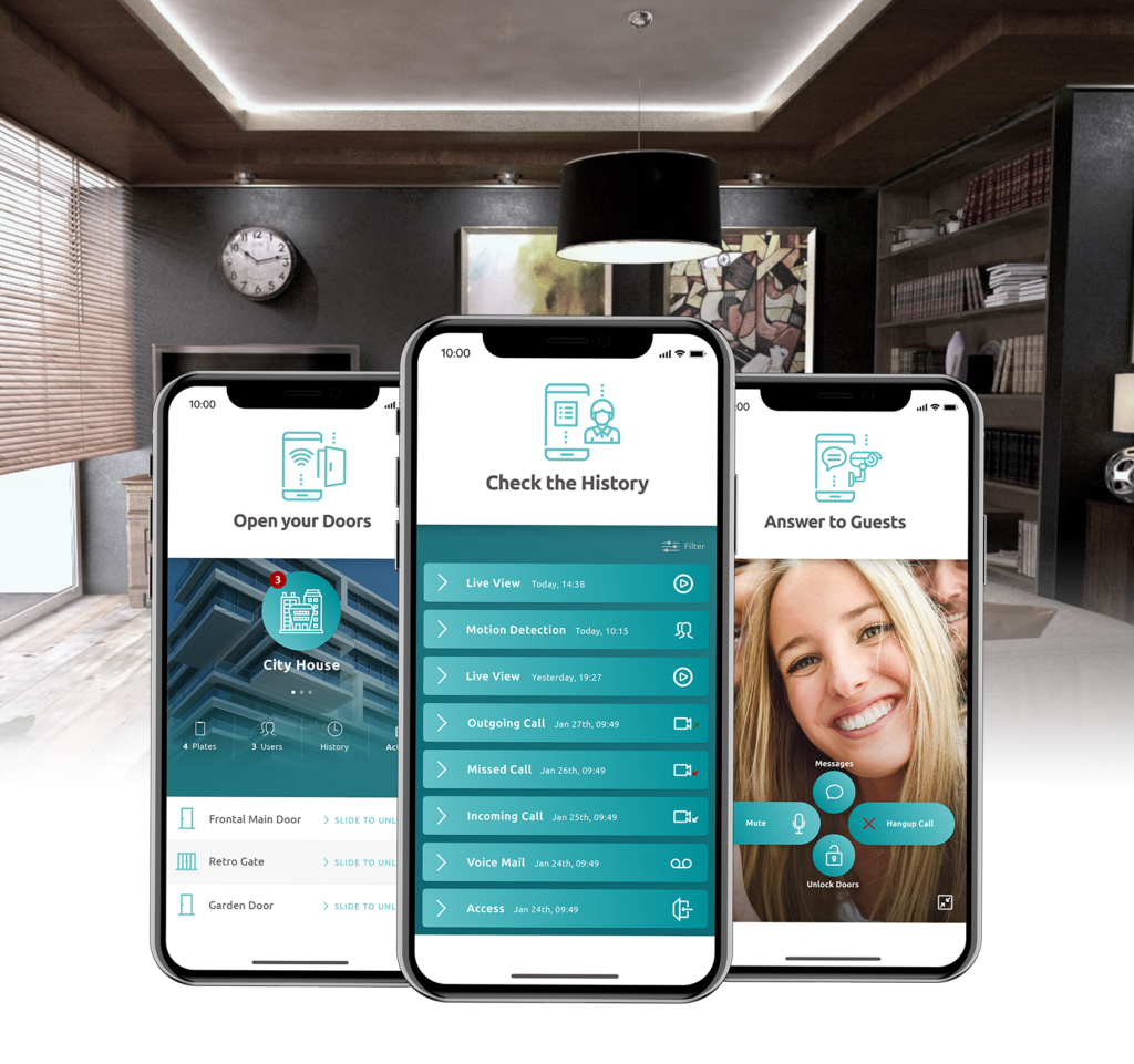 Mediante queste applicazioni, gli utilizzatori di un videocitofono smart possono sapere chi sta suonando alla porta semplicemente guardando il proprio dispositivo mobile. L’App invia infatti una notifica che avvisa nell’immediato quando ci sono visite in corso, permette inoltre di aprire la porta collegata al videocitofono anche a distanza e di svolgere altre utili funzioni, essenziali per la sicurezza di una casa o di un qualsiasi altro edificio.